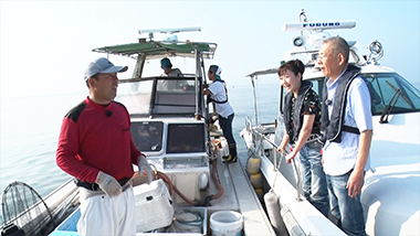 午前5時から行われる、寺田兄弟の漁に同行した2人。兄弟によるとコハダはとても繊細な魚で、わずかな音で逃げてしまうという。兄弟ならではの、あうんの呼吸で行われる投網漁に、2人はすっかり感心! その日の出荷作業を終えたところで、鮮度抜群のコハダをご馳走になり、食感の素晴らしさに感動する。