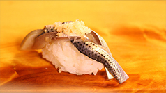 そこには、カニや小魚の餌になるプランクトンが豊富に含まれていて潮の満ち引きや流れによってプランクトンも海の中を漂い、魚達のエサになります。栄養豊富な干潟の海で育ったコハダは脂がのっておいしくなります。 - 江戸前鮨の技「酢〆」