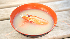 さらに、エビの頭をだしに使ったみそ汁をご馳走になり、甘さとうま味に驚く。