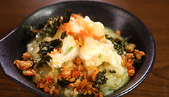 一方、かやく飯のふりかけは、しょうゆで香りと下味をつけ、じっくり揚げることで、カリカリの食感と香ばしさをプラスしました。