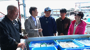 そして、ついに今年、初めてのしらすがあがった…! とれたてを船上で口にした小倉シェフと神保は、そのおいしさにビックリ。しらすは鮮度が命のため、すぐに氷でしめて運搬船に渡して港へ。競り落とした仲買人もすぐに釜揚げ作業を開始。港で待っていた浅香は、出来上がったばかりの釜揚げしらすを試食させてもらい、ふっくらしたおいしさに感激する。