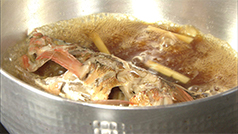 普通の煮付けは煮汁を魚に染み込ませて仕上げますが、今回、大江料理長は、お酒に合う荒炊きにしました。
