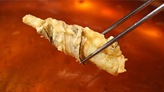 深い所に送ってあげて、そこで、均一に揚げるんです。