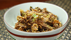 中まで火が通ったら‥最後に揚げあがる一瞬手前で油の温度を上げます。
