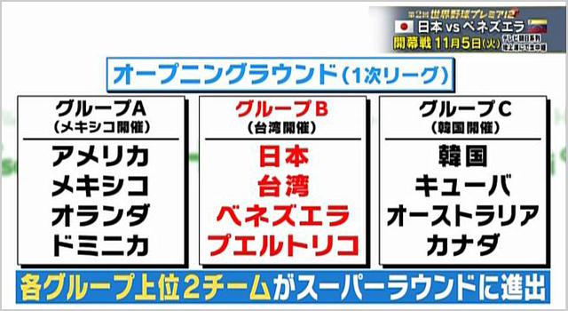 スーパーラウンドに出場する6チームは、オープニングラウンドで対戦していないチームと4試合行い、上位2チームが11月17日、東京ドームで行われる決勝戦へ。