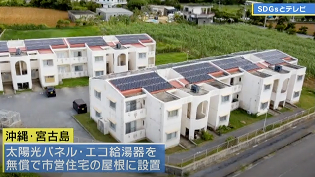 太陽光パネルとエコ給湯器を無償で市営住宅の屋根に設置。