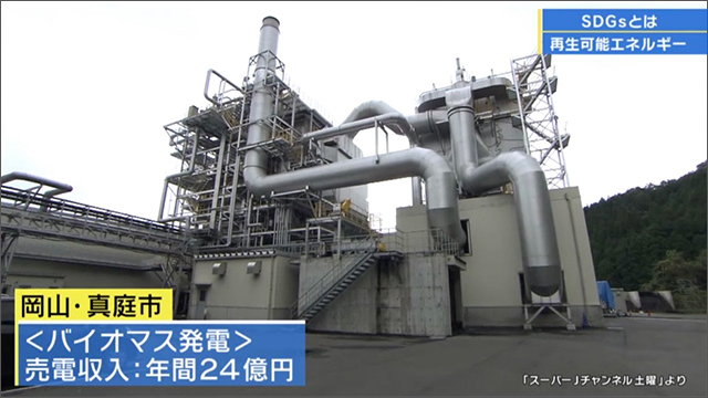 地域の製材業者が中心となり、放置されていた森林資源を活かした大規模なバイオマス発電所を建設、売電収入は年間24億円。