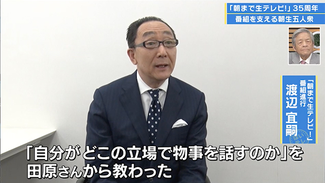 渡辺キャスターから見た田原さんは「疲れたと言わない人。だから自分も疲れたと言えない」。渡辺キャスターは35年の中で物事の考え方を田原さんからたくさん教わったといいます。「真ん中というものはない。右から見たら左。左から見たら右。自分がどこの立場で物事を話すのか」がとても大切。