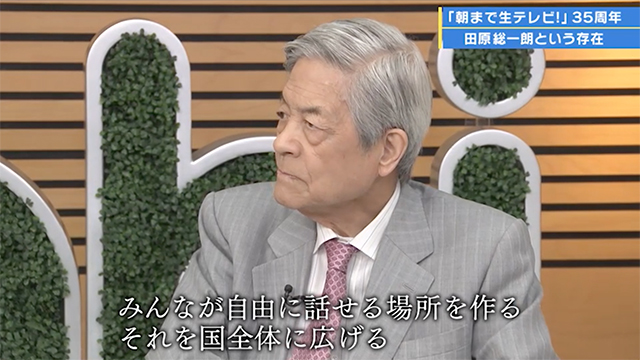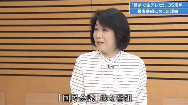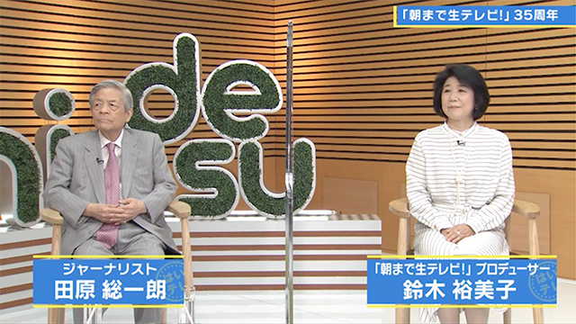 35年という長寿番組になった理由を、田原さんは「自由に発言でき、自由に論争できるから」、鈴木プロデューサーは「いろいろな人にいろいろな意見を聞ける場が開けたこと、国民会議的な番組であり続けたこと」と考えています。