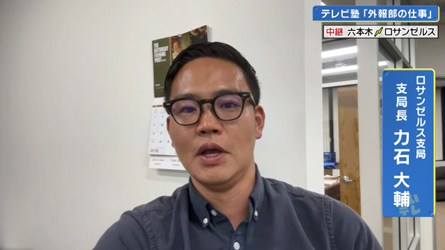 <大谷翔平選手の入団会見を取材したロサンゼルス支局と中継>