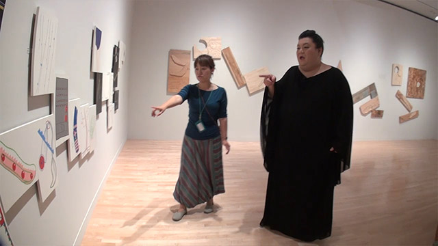 「全盲の作者が歩いた軌跡を立体的に表現された地図」を見学。清澄白河から現代美術館までの軌跡が表現された、おしゃれな地図の作品に感動するマツコ。