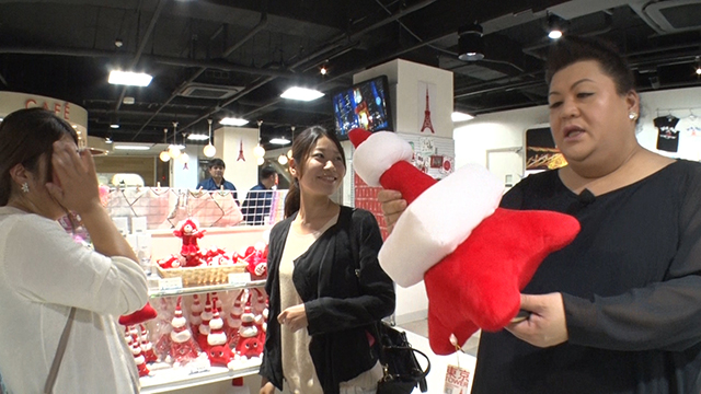 タワー下にあるビル内のお土産屋さんを物色するマツコ。