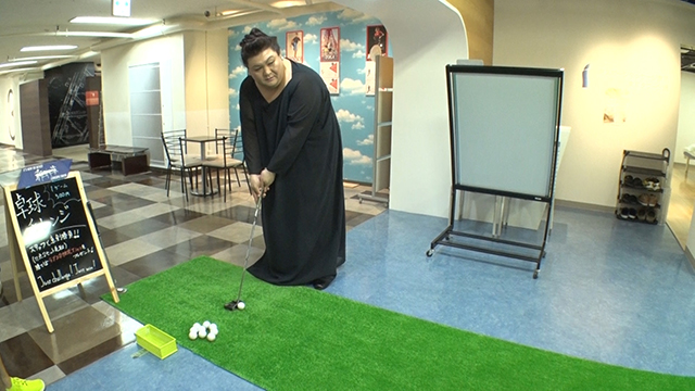 ビル3階にあるスポーツ施設でパターゴルフをやってみると、意外にも「ゴルフ、楽しいかも」発言。
