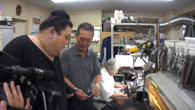 御徒町は宝飾店が多い町。夜道を歩いていると、居残り作業をしている宝飾加工の工房を発見。マツコは職人さんたちの繊細な仕事っぷりに感心する。