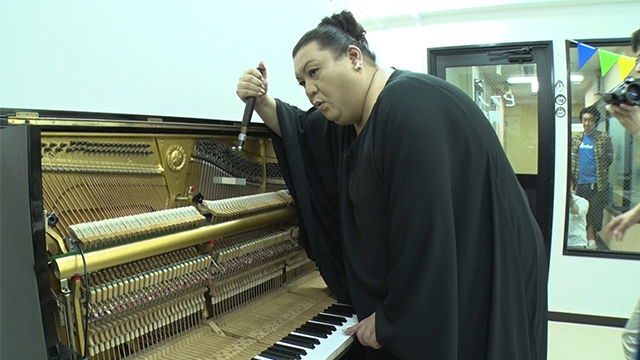 再び歩き始めると、音楽の専門学校に通っているという生徒さんに遭遇。目の前にある学校に急きょ訪問させてもらい、ピアノ調律の授業を見学。マツコも調律のやり方を教わり体験させてもらうことに。