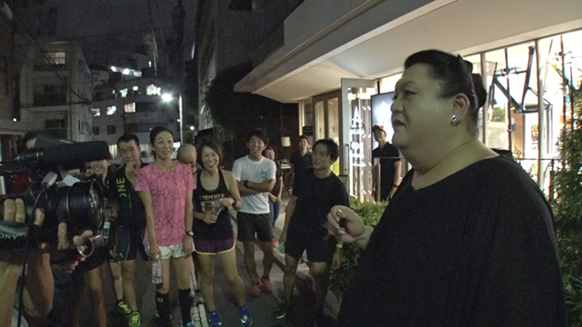 将棋会館の外で、ランニング集団に遭遇。彼らに導かれるままに、近くのトライアスロン専門店に入店。「まったく興味がない…」と言いつつ、マツコはスポーツを愛する人たちの話に耳を傾ける。