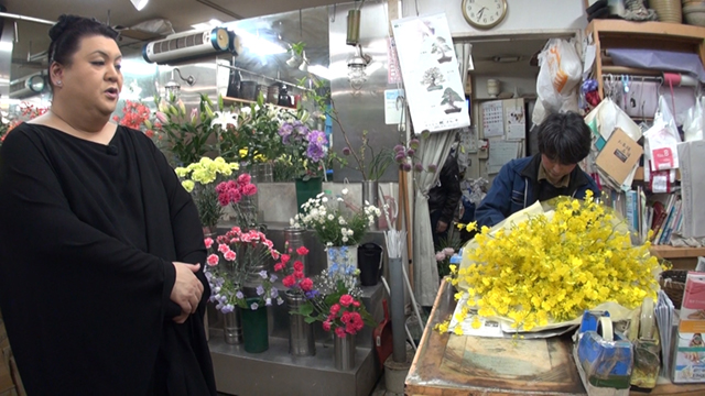 創業から約100年の歴史ある生花店に立ち寄り、急きょ花束を作ってもらうことに。黄色一色の美しい花束を持ちながら、マツコはセレブの象徴「白金プラチナ通り」を歩くと意気込む。