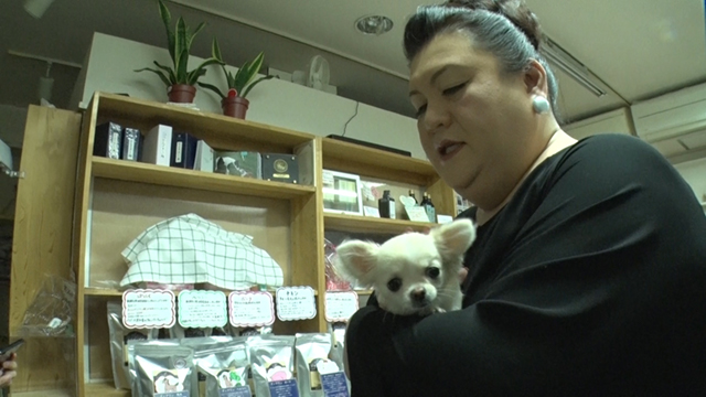 マツコ、ペットフード店で子犬を抱く