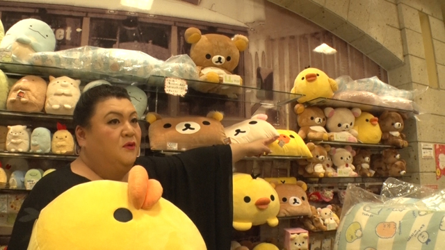たくさんのキャラクターグッズが置かれている雑貨店に入店。「おじいちゃんおばあちゃんが家にぬいぐるみを置く気持ちが分かってきた」と、可愛いぬいぐるみを前に購入するか迷う。