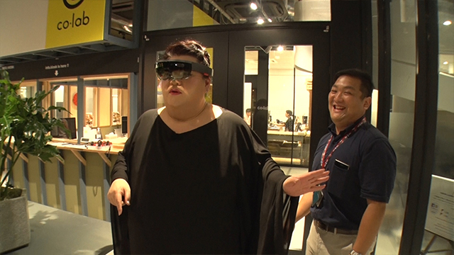 最先端技術を研究する会社のオフィスに立ち寄り、現実世界とバーチャルの共存した映像が見られる“MR”の最新版を体験させてもらうマツコ。
