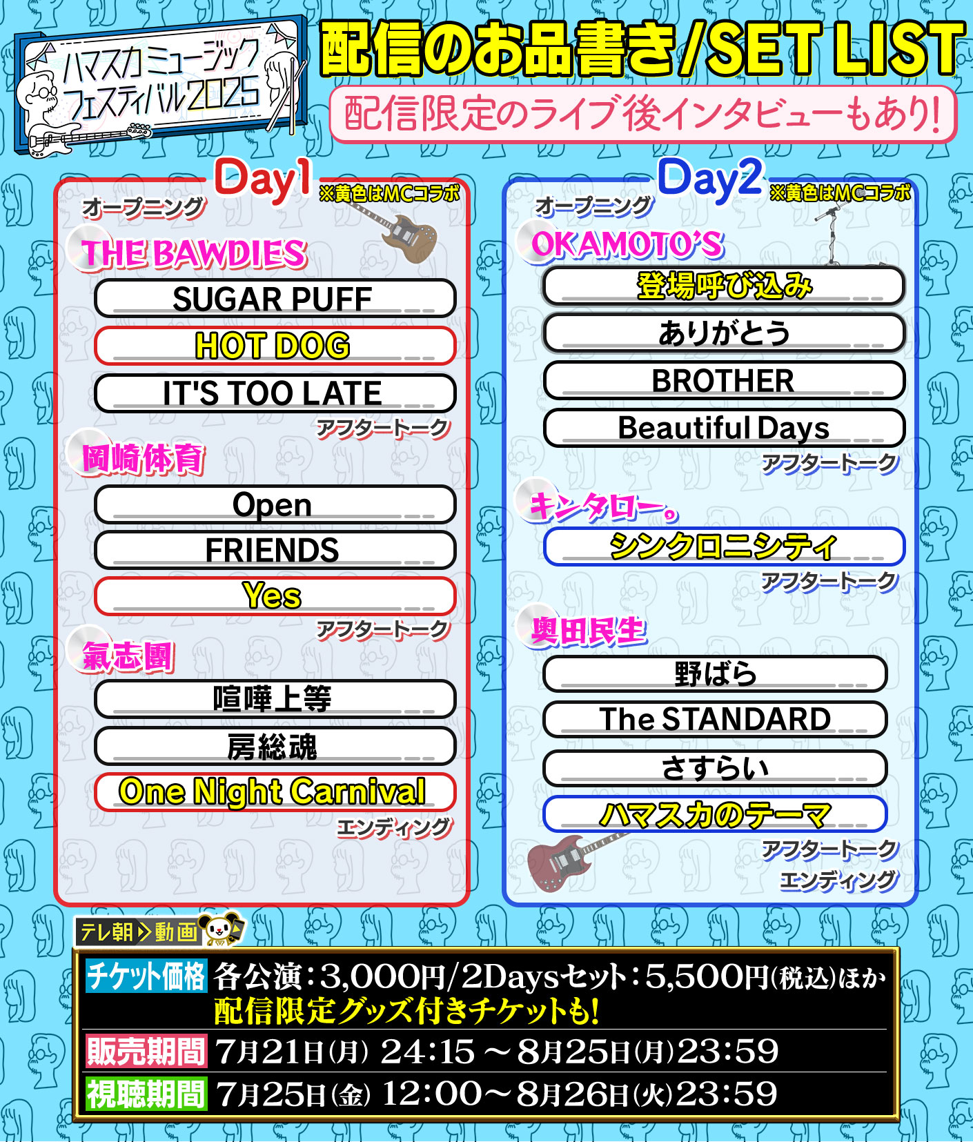 ハマ・オカモトと齋藤飛鳥が豪華アーティストとお送りする絶対に後悔させない“フェスティバル”=“お祭り”配信となっています!!