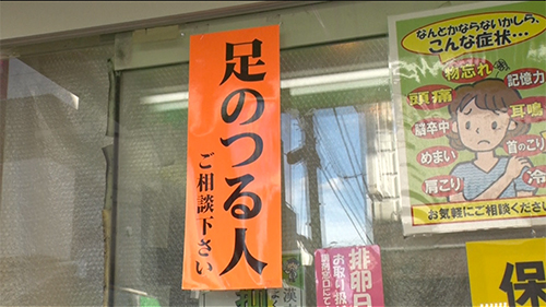 カズレーザーの目に最初に留まった張り紙は…『足のつる人 ご相談ください』。
