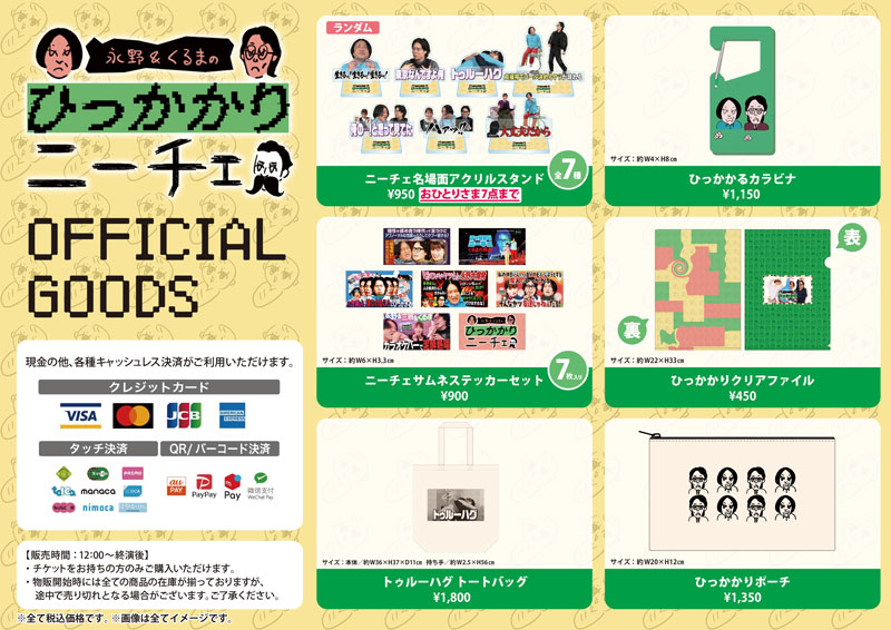 ※終日、場外での販売となります。場内でのグッズ販売はございませんので、グッズをお買い求めのお客様は、入場前もしくは退場後にお買い求めいただきますようお願いいたします。