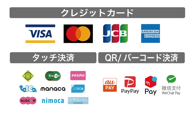 現金の他、各種キャッシュレス決済がご利用いただけます。