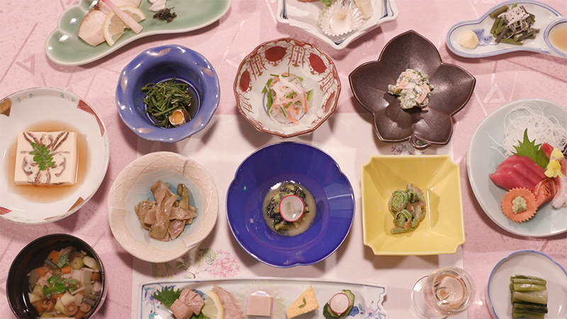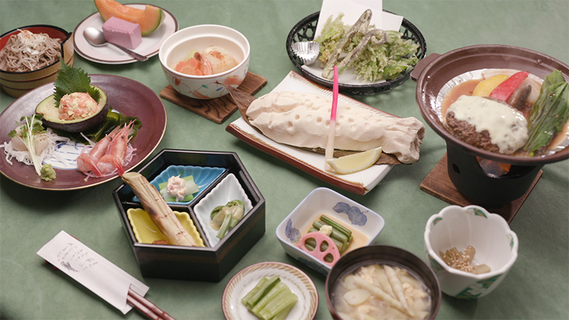 食事は地元食材の自然にこだわっており、新潟の郷土料理「のっぺ汁」をいただけます。
