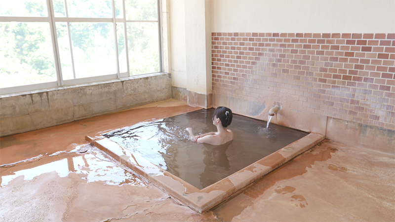 お湯は赤茶色の濁り湯で源泉かけ流し。湧き出したばかりの源泉は透明ですが、空気にふれることで鉄分が酸化し赤く変わるそうです。