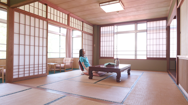 部屋からは、春は新緑、秋は紅葉の名所として知られる大田切渓谷を眺めることができます。