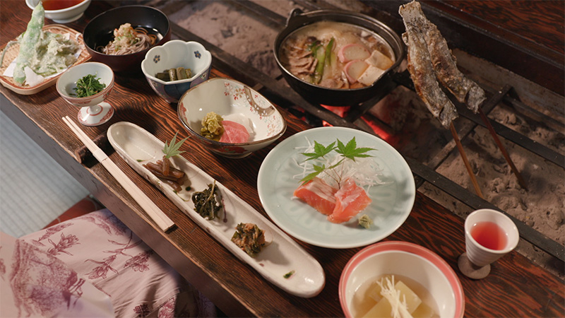 2000メートル級の山々が連なる、八ヶ岳連峰。その、山腹に湧く一軒宿の「唐沢鉱泉」。大正末期から、この場所で登山客を迎えてきました。大きな天窓から光が差し込む大浴場。泉質は、炭酸成分を含む冷鉱泉。源泉は10度前後と、かなり冷たいので加温されています。肌にまとわりつく気泡、その弾けるような刺激が、なんとも心地良いんです。夕食は、滋味あふれる山の幸です。地元の野菜や川魚など、手間ひま掛けて調理されています。