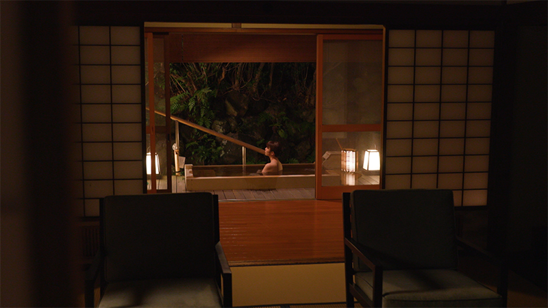 囲碁や将棋の対局場としても使用される貴賓室「松風」。ヒノキの香りが漂う客室専用の露天風呂では、贅沢な静けさが満喫できます。