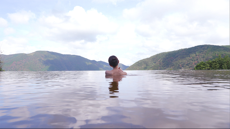 時間で入れ替えとなるもう一つの露天風呂「浮雲の湯」。棚田状に造られた湯舟からは、まるで空に浮かんでいるような絶景が満喫できます。