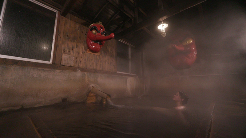 そんな天狗伝説にちなんだ混浴のお風呂が「天狗の湯」。源泉は58度と高温ですが、注がれるまでの間に、自然に温度が下がり、さらに浴槽で湧き水を足すことで適温に調節しています。