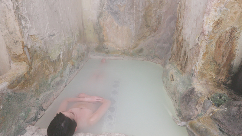 元は緑色の浴室の壁ですが、硫黄の作用で、ほんの数カ月で見た目が変化してしまうそうです。温泉成分の濃さを、体と目で感じられるお風呂です。