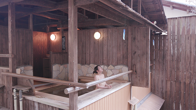 お食事や休憩もできます。日替わりで男女入れ替えになる大浴場。