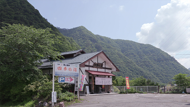 栃木県日光市を流れる鬼怒川の上流。温泉ファンに人気の日帰り施設、四季の湯があります。緑あざやかな山々を一望する、大きな露天風呂。