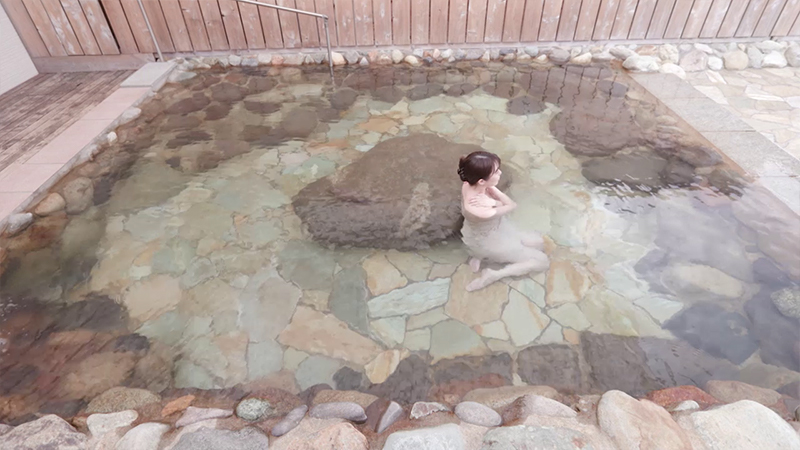 大人7~8人がゆったり入れます。かけ流しのお湯はアルカリ性単純温泉。