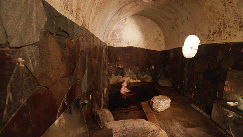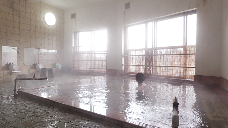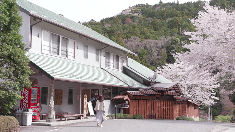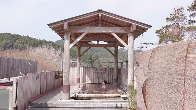 菜の花の中を走る小湊鐡道。養老渓谷駅の風情ある駅舎から、旅が始まります。駅から車でおよそ15分のところに滝見苑・ごりやくの湯があります。ここでは宿泊施設のお風呂を、日帰り利用できます。男女別に内湯があります。お湯も41度ほどで、丁度良い湯加減です。花見の露天風呂は、この時期にしか体験できない贅沢なひとときです。
