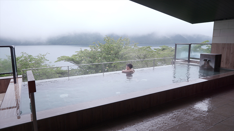 本館の露天風呂に浸かれば、目の前に箱根の外輪山と芦ノ湖の絶景が広がります。