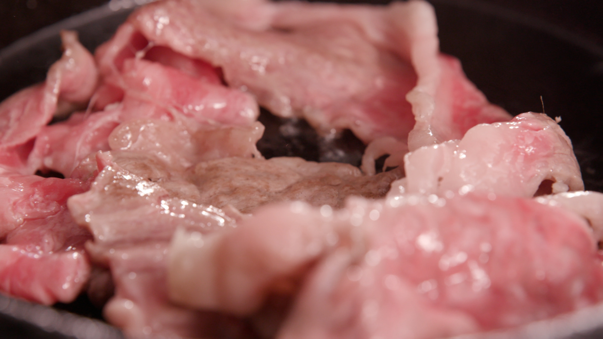 夕食は、福島県の南東部石川郡で育てられた石川はちみつ牛のすき焼きコース、玉子湯特製の出汁と合わせて頂きます。