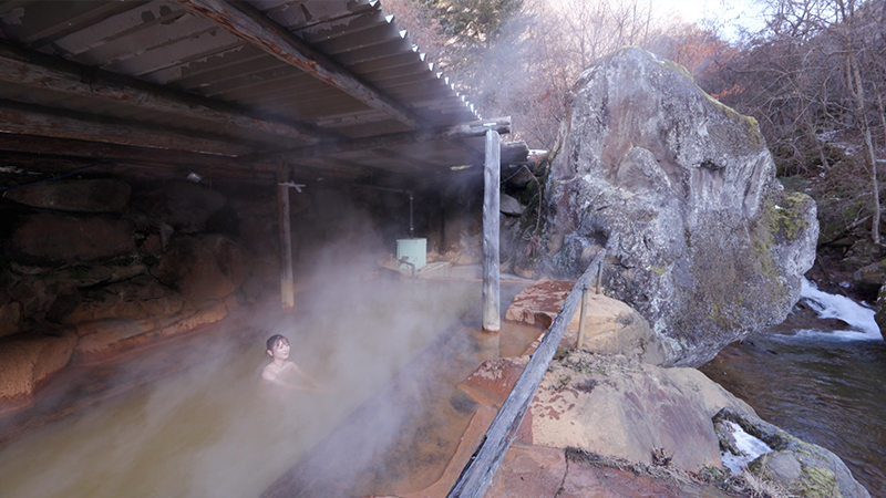 大正12年(1923年)創業の一軒宿、81の客室がある大型旅館です。露天風呂付特別室は、6畳の和室に12畳のベッドルーム、温泉の露天風呂を備えた贅沢な作りとなっています。宿の代名詞と言える渓谷沿いの巨石露天風呂は、横谷峡に元々あった巨石にそうように作られました。泉質は、単純鉄冷鉱泉。鉄分に加え、二酸化炭素を多く含む茶褐色のお湯をかけ流しで楽しめます。旅館の300m上流の渋川沿いには地下10mから湧き出している自家源泉があり、総湯量は、なんと毎分1080L。自然の力強さを肌で感じる秘湯に癒やされます。宿には貸切風呂が隣り合わせで2種類あり、4畳を超える湯船には42度に調整されたお湯が満たされています。鉄分に加え、天然の保湿成分と呼ばれるメタケイ酸を豊富に含んだお湯を独り占めできます。