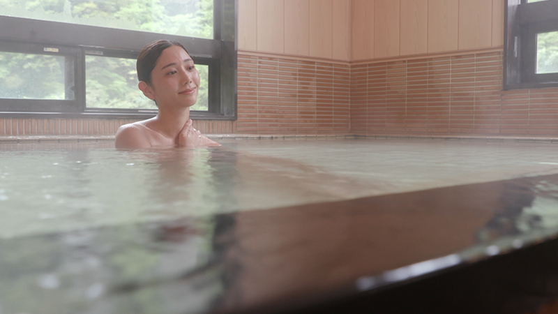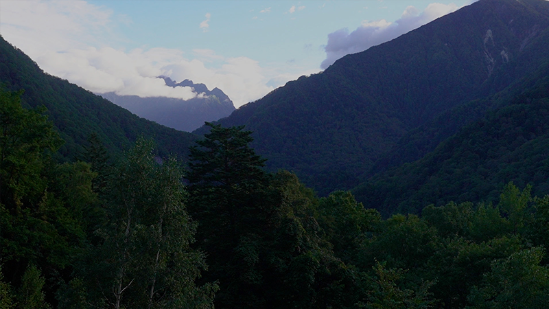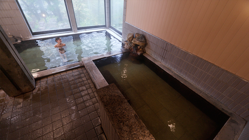 中部山岳国立公園の中に建つ「中の湯温泉旅館」。大正4年に創業した、100年を超える歴史ある宿です。湯船は大小2つあり、窓際の大きい湯船は40度、手前の小さい湯船は43度。注ぐお湯の量だけで、温度を調整しています。自家源泉を300mほど宿まで引いて、湯船を満たしています。お湯は天然の保湿成分と言われるメタケイ酸が多く含まれています。ブナの原生林に囲まれた露天風呂では、天気のいい日には、山あいの向こうに穂高連峰を望むことができます。