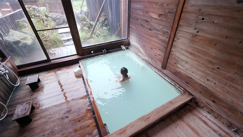 長野県の西部「白骨温泉」。「3日入れば、3年風邪をひかない」と伝わる名湯は、鎌倉時代にすでにお湯が湧いていたと伝わっています。公共野天風呂は1994年に開業しました。お湯はPH6.9の中性で、石灰と微量の硫黄成分によって薄く白濁します。自家源泉があるのは、湯船から15mほど離れた湯川のトンネル。トンネル脇の岩から湧きだした温泉の溜まり場から引いています。自然に湧きだす源泉の温度は39度ほどなので、42度前後に温めています。多い日には、200名もの入浴客が訪れる名湯を堪能しました。