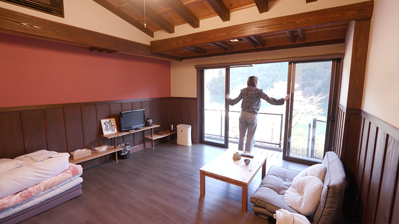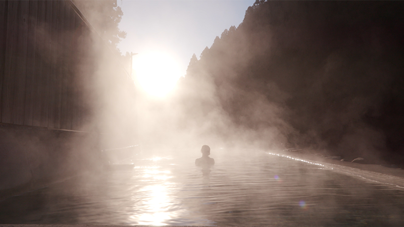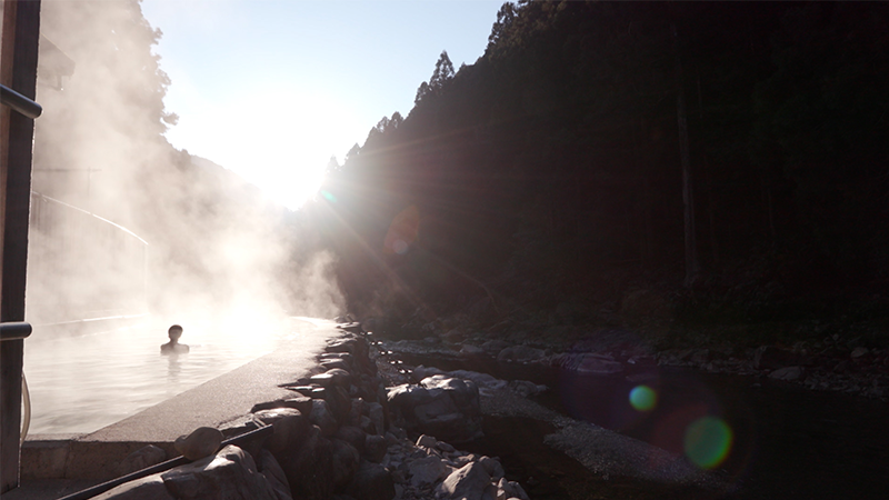 十津川村には3か所の温泉地があり、十津川温泉郷と呼ばれています。その一つが、湯泉地温泉です。十津川を見下ろすことができる露天風呂。無色透明のお湯が満たされています。泉質は、単純硫黄泉。滑らかな感触の、やわらかいお湯です。十津川温泉郷のなかで最も歴史が古く、戦国時代には湧いていたとされる秘湯です。