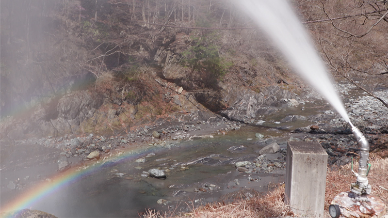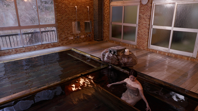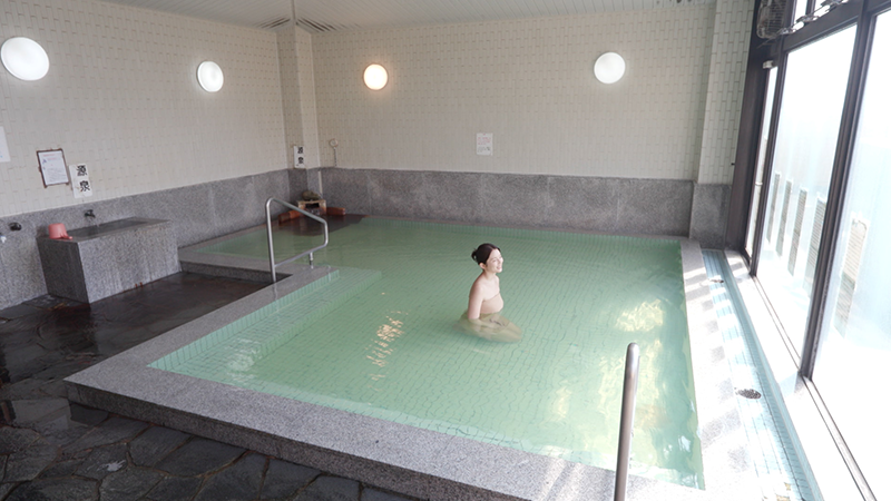 2001年にオープンした「韮崎旭温泉」。知る人ぞ知る、人気の日帰り温泉施設です。38度の源泉を加温せず、掛け流しているため、お湯はぬるめ。しばらくすると…大量の細かい泡がまとわりついてきました。これはお湯に含まれる炭酸成分によるもの。泉質はナトリウム-塩化物・炭酸水素塩泉。お湯は無色透明で、ぬめりを感じるのが特徴です。湯口の回りだけ真っ黒になっていました。3日経つと黒くなるそうですが、掃除をしてもあえて残しているそうです。成分が濃い温泉を満喫しました。