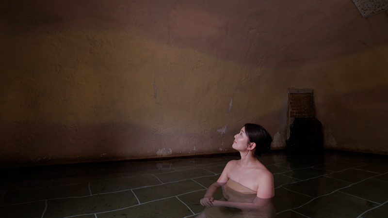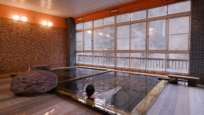 古くから湯治場として栄えてきた西山温泉。そのひとつ「元湯 蓬莱館」に立ち寄りました。鉄筋コンクリート造りの新館の先に、明治2年に建てられた旧館があります。無色透明の源泉がそのままかけ流されている湯船には、まるで黄金のような山吹色をしている湯の花が浮かんでいます。源泉が注がれている湯船は34度とかなりぬるめ。源泉風呂に入ったら、隣の39度に加温してある湯船へ。1、2時間かけて長湯を楽しむのが、この温泉のスタイルです。