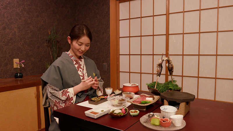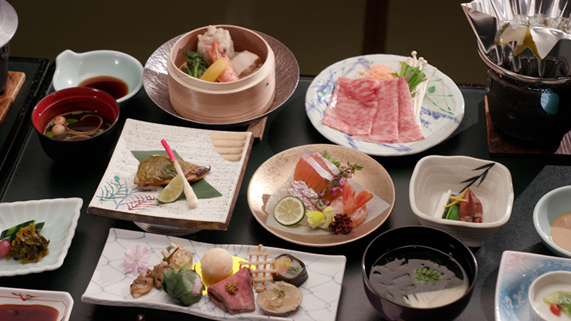 山の中腹に建つ「慶雲館」。開湯は西暦705年。飛鳥時代末期の慶雲年間にお湯が発見されたことから「慶雲館」と名付けられました。ギネス世界記録にも「世界で最も古い歴史を持つ宿」として認定されています。宿の名物風呂が、水に強い高野槙の木材で作られた、縦2m、横4.5mの巨大な桶の湯舟。見上げれば、山肌の深い緑が広がります。源泉は5本あり、ひとつの宿としては日本屈指の湯量を誇ります。2005年、開湯1300年を記念して新たに掘削したところ、源泉を発見。その湯量は毎分1600リットル。これまでの源泉とあわせて、毎分1800リットルにもなります。夕食は、山の幸の滋味溢れる料理が並びます。山のものにこだわり、海のものを使っていません。メインは、ブランド牛肉「甲州牛」。富士山の溶岩で作ったプレートで、霜降り肉を焼き上げます。翌朝、白鳳石と名付けられた地元の石を使った露天風呂へ。川のせせらぎを聞きながら、身も心も癒されました。