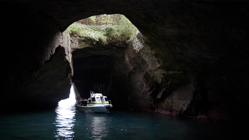 西伊豆屈指の景勝地として知られる「堂ヶ島」。その景色を遊覧船で見て回りました。景観は、海底火山の噴火と波の侵食によって作られました。遊覧船のハイライトは、自然が生み出した「天窓洞」という洞窟。太陽の光が海面に差し込み、青く神秘的な世界がありました。そして、遊覧船からみえた、断崖絶壁の露天風呂へ。お湯は、無色透明でカルシウムとナトリウム成分を多く含んでいます。源泉が52度あり、水を加えて、温度を調整しています。目の前に広がるのは、駿河湾…。駿河湾の絶景を、独り占めする贅沢な時間でした。